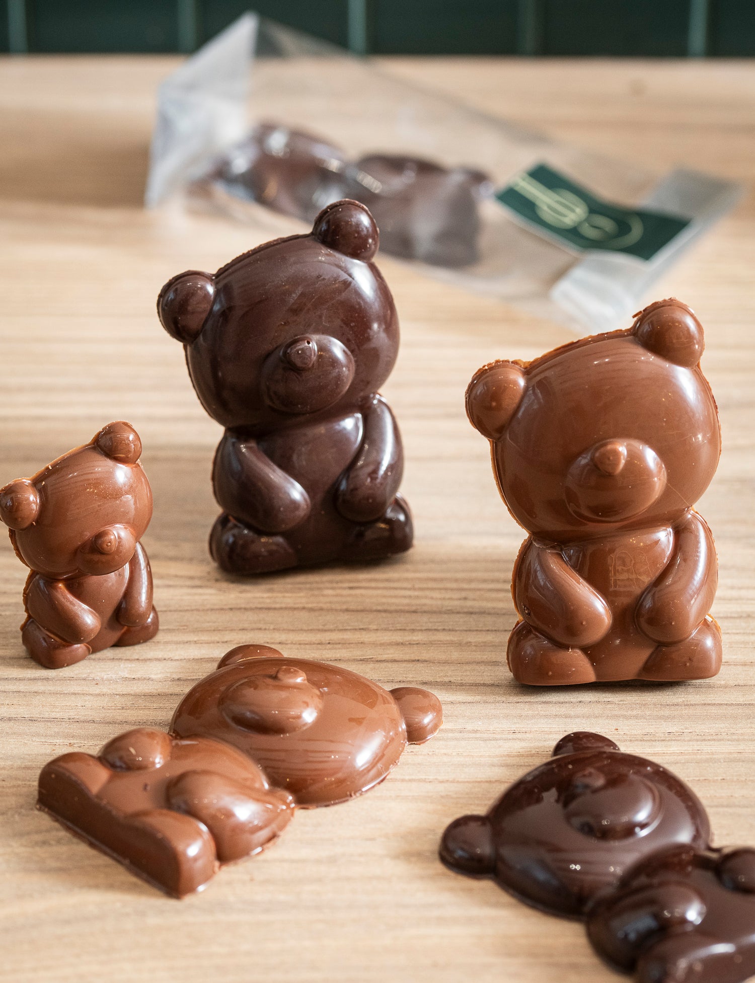 Découvrez nos gourmands Oursons à la Guimauve vanille. Disponible au chocolat noir ou au lait, pour les grands gourmands ou les petits.
